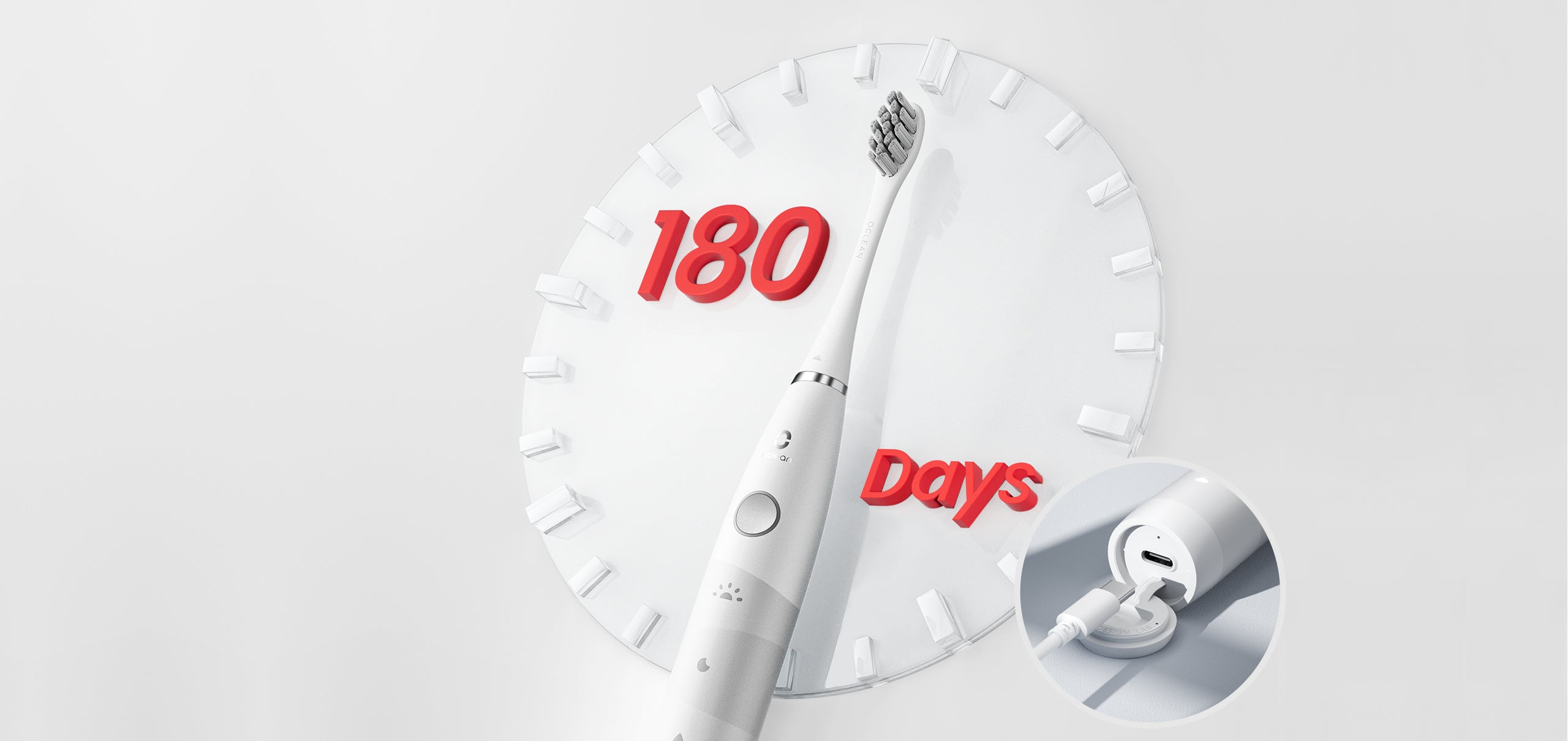 A: The battery capacity of Oclean Flow smart sonic electric toothbrush is 2500mAh. Calculated based on morning mode, it can last about 180 days of normal usage.